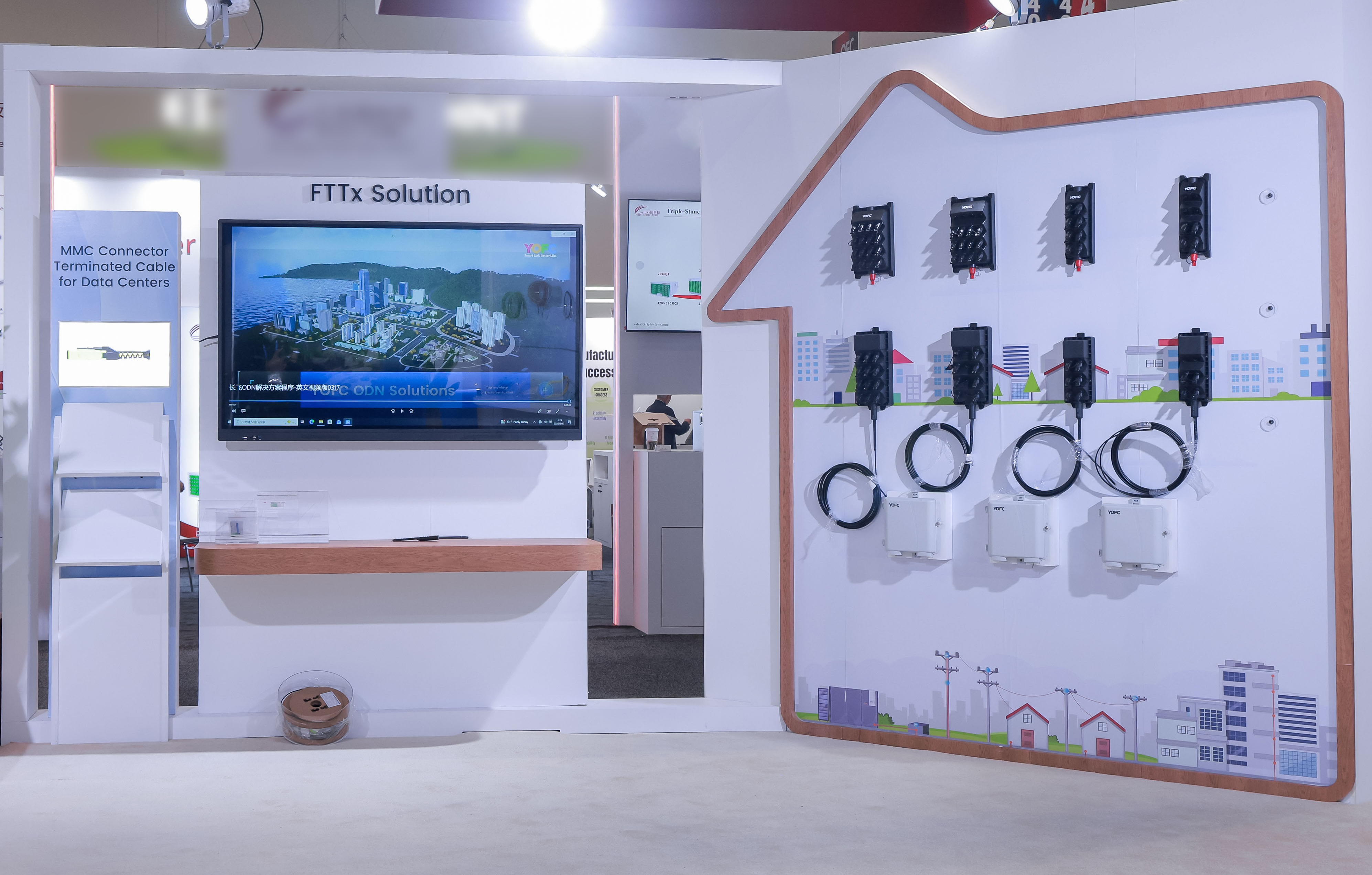 FTTx解决方案板块展示了博水信息公司从局端到用户端的全系列光纤接入方案,,涵盖光纤、、光缆、、配套产品及布线方案等,,,,全面满足光纤到户、、、到房间、、到桌面的多样化建设需求,,,,助力全球运营商构建千兆乃至万兆全光网络,,,,夯实万物互联的最后一公里。。。